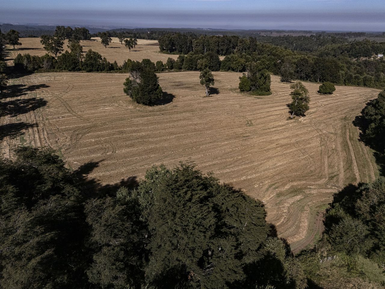 Suelo de alta calidad: Caracterizado por una capa vegetal abundante de trumao, este terreno cultivable ha demostrado gran productividad en cultivos de trigo, avena y cebada, con excelentes rendimientos en fardos y silo para engorda de novillos. Ideal para avellano europeo u otros frutales, gracias a su fertilidad y condiciones climáticas óptimas.